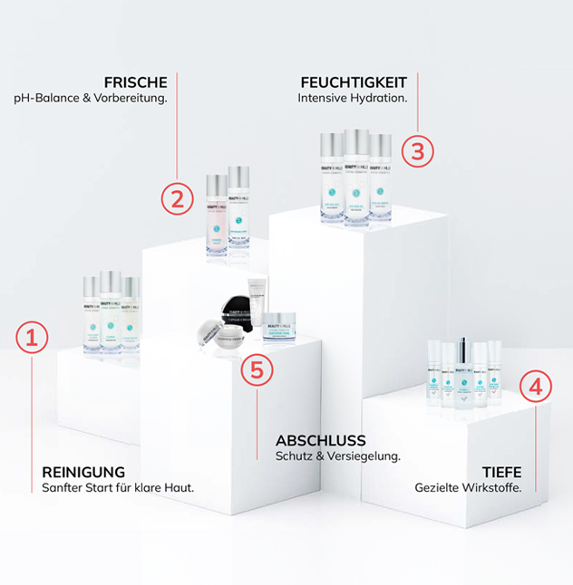 Das Beauty Hills System basiert auf einem klar strukturierten Pflegekonzept.